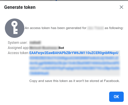 Now you have to collect a permanent access token to connect your bot.